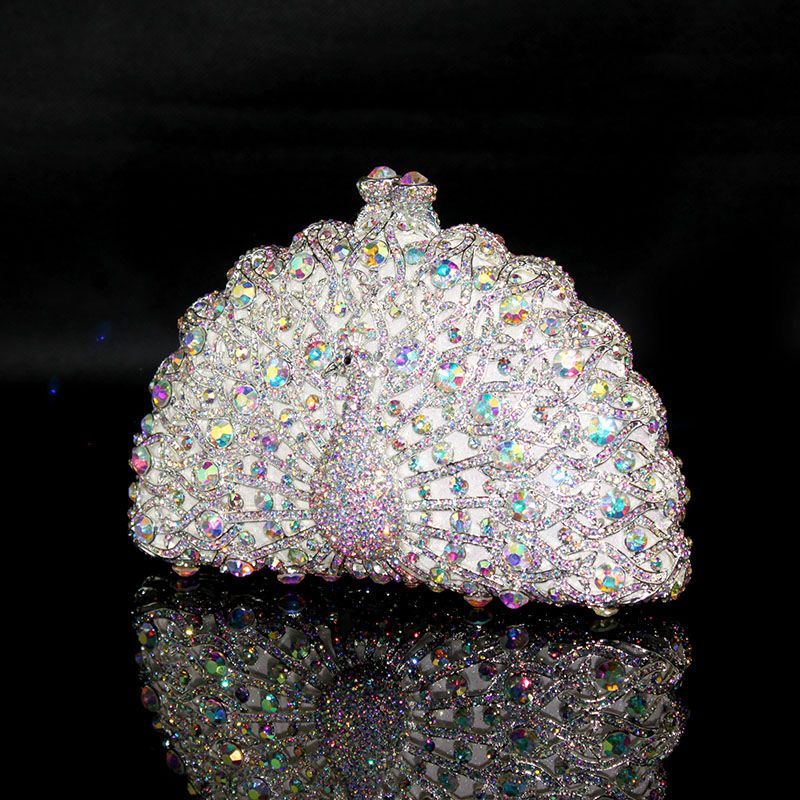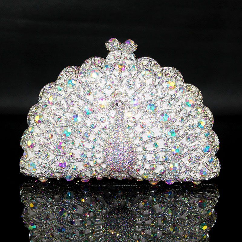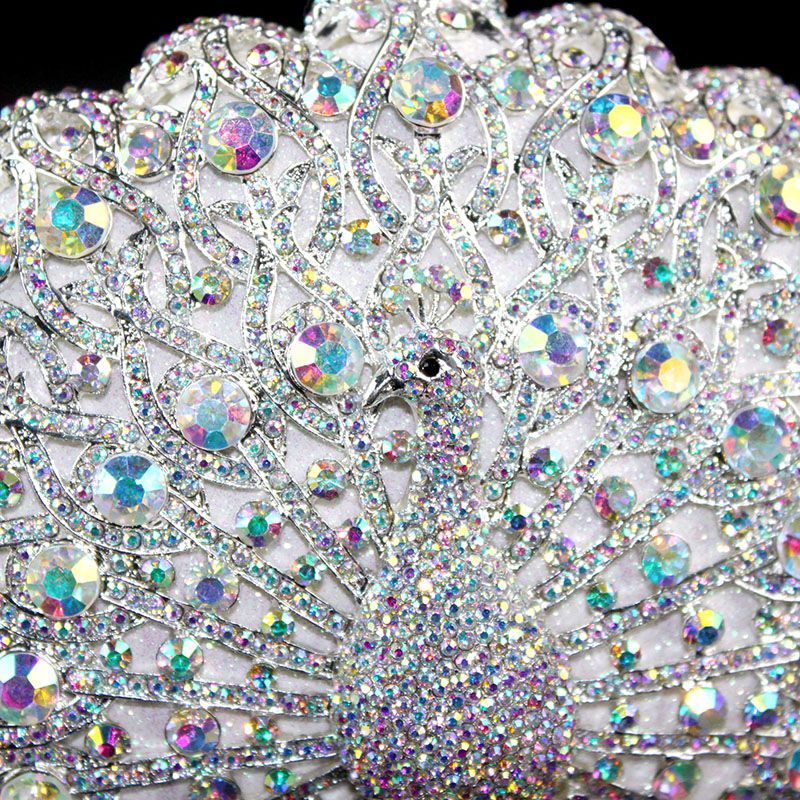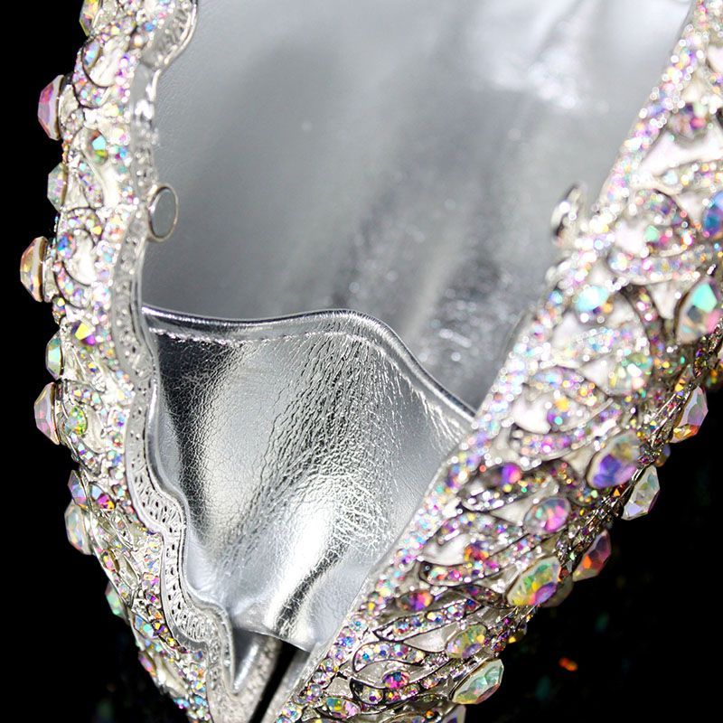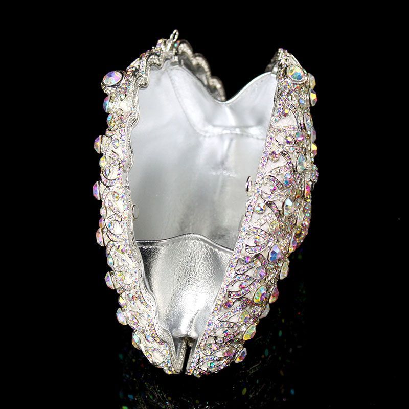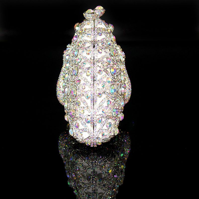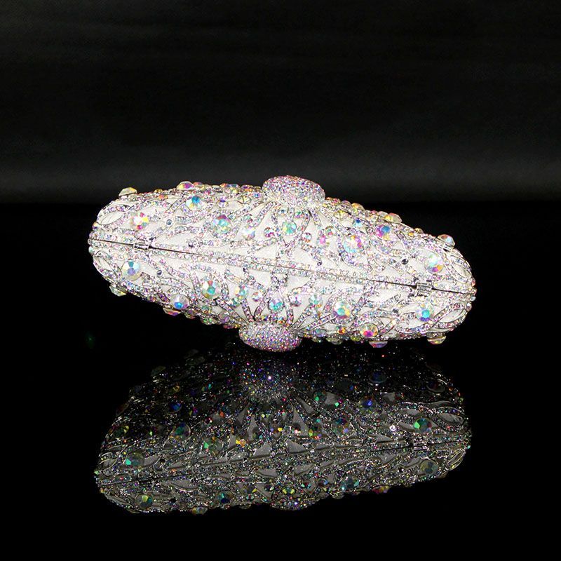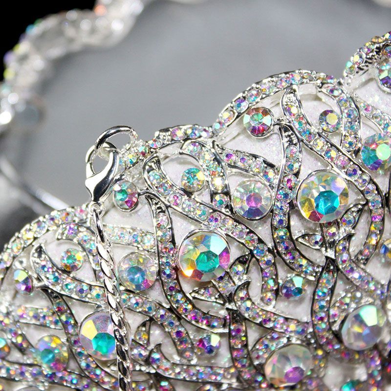 Hand-inlaid Swarovski crystals shine through hollow design, alloy body with lambskin lining—adds spotlight-worthy elegance to banquets and annual parties