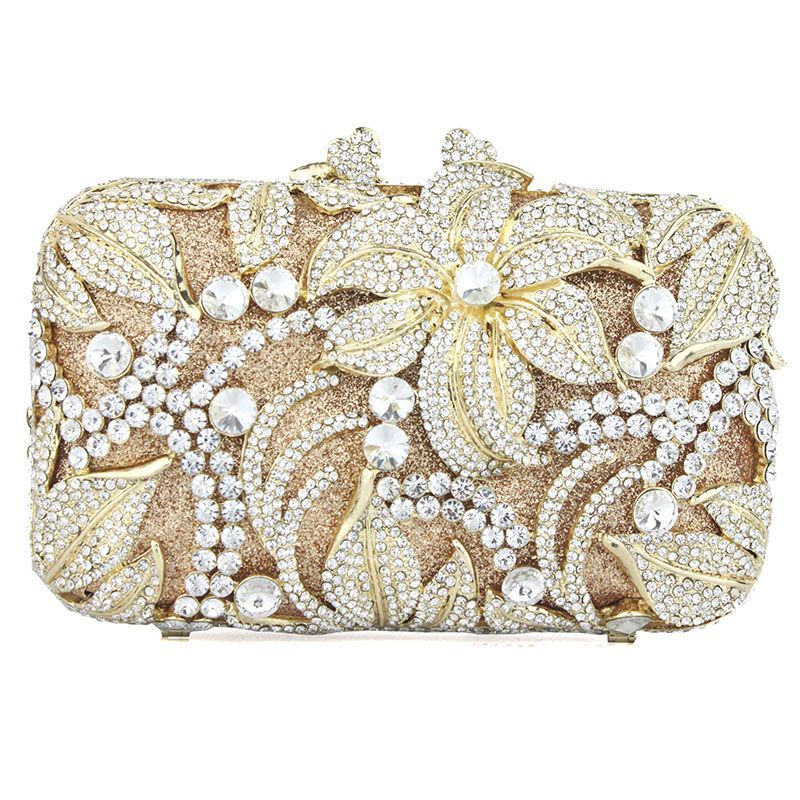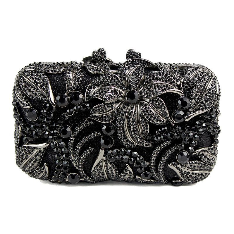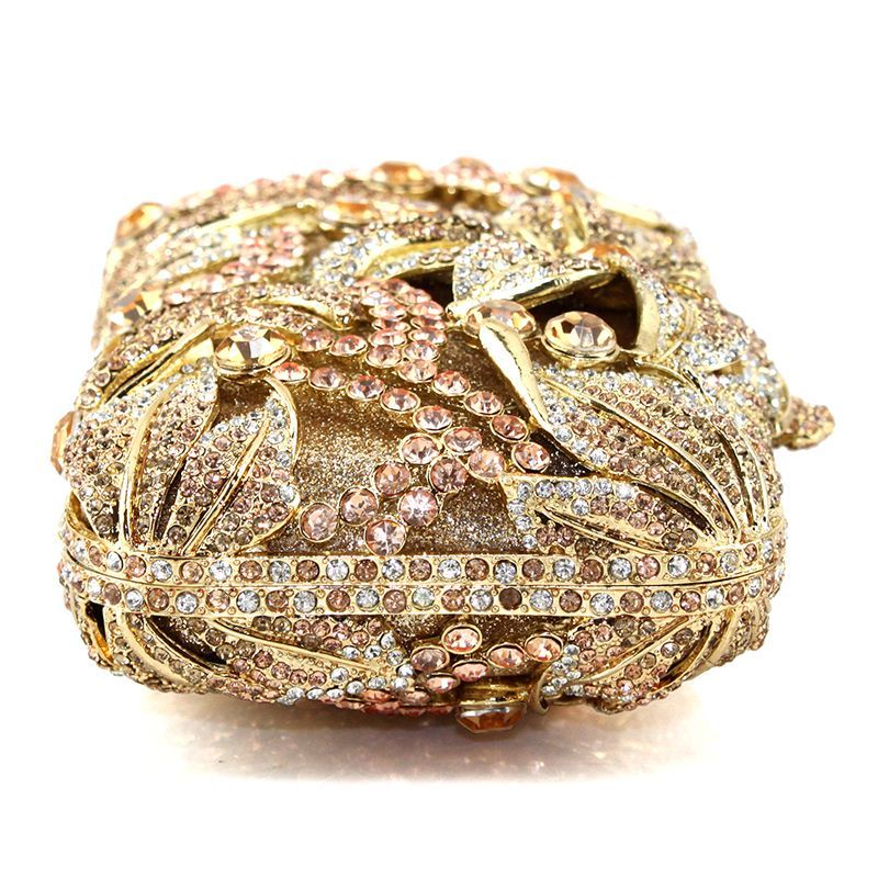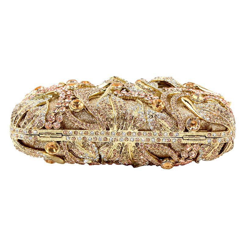 Hand-inlaid Swarovski crystals shine through hollow design, alloy body with lambskin lining—adds spotlight-worthy elegance to banquets and annual parties