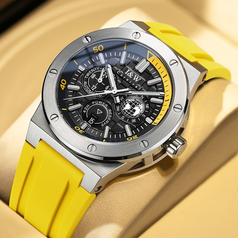 (S)I&W783 42mm Stainless Steel Watch with Miyota 8217 Movement, Synthetic Sapphire Crystal, Rubber Strap with Pin Buckle